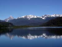 lac avec vue sur les sommets enneigés. Un peu de vie chilienne, avec un